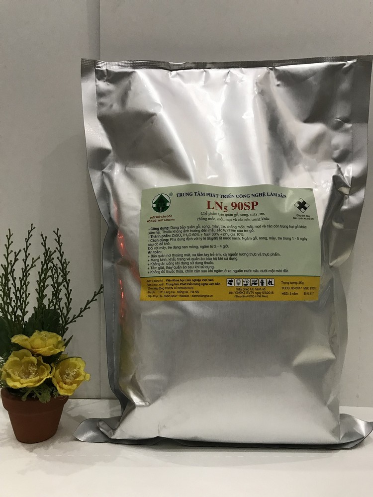 LN5 90 bột: Thuốc ngâm tẩm gỗ, song, mây, n ứa chống mối, mọt, mốc: sản phẩm của Viện Khoa Hoc lâm nghiệp Việt Nam.