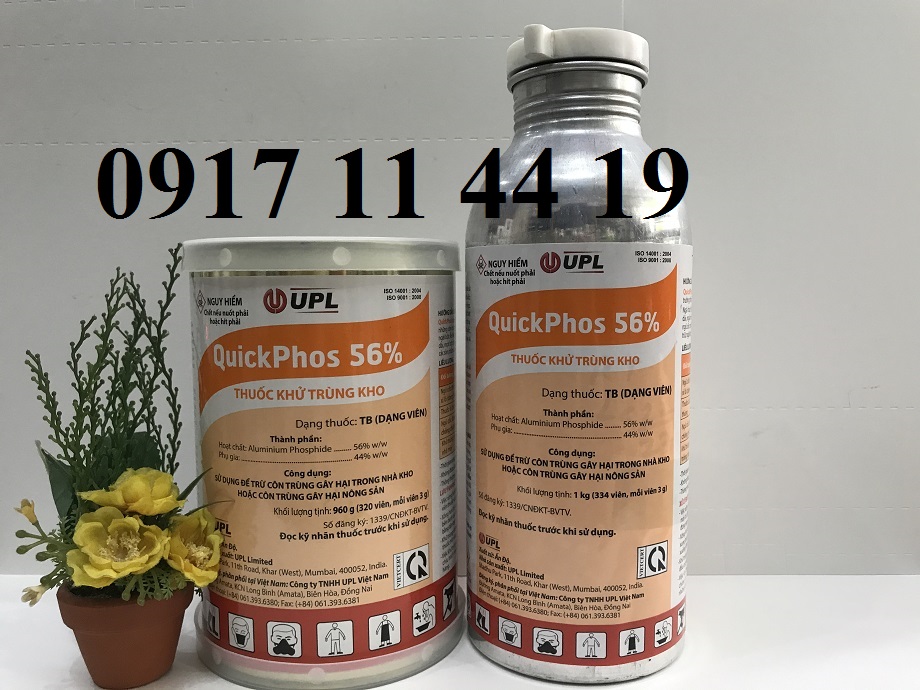 - Thuốc diệt mọt nông sản Quickphos 56% dạng xông hơi khử trùng, sản phẩm của Ấn Độ.